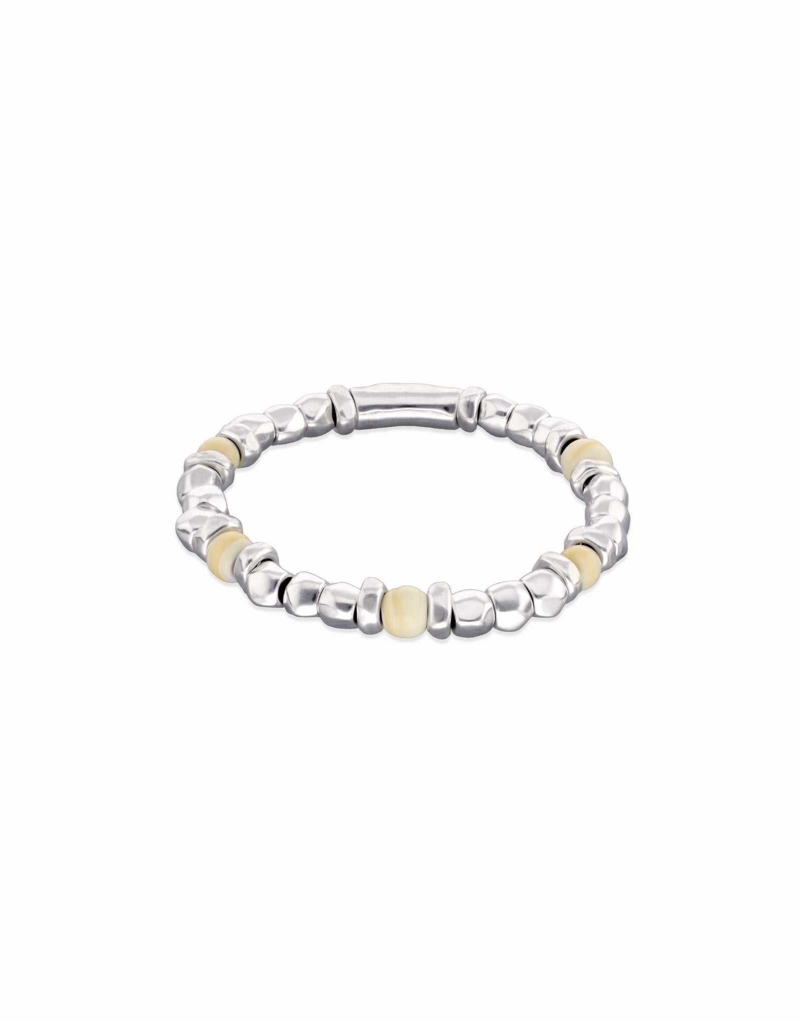 Elastic stretch bracelet with sterling silver metal alloy beads and Murano glass beads. Jewelry, skulls, and rock & roll. The collection Ser imparable is designed to bring out your most punk spirit; a spirit that prefers to ask for forgiveness rather than permission, a spirit that is unstoppable and gives it all. If you are surrounded by chaos and noise with the volume up to the max, Ser Imparable is the collection that will take you on stage like a true rock star.