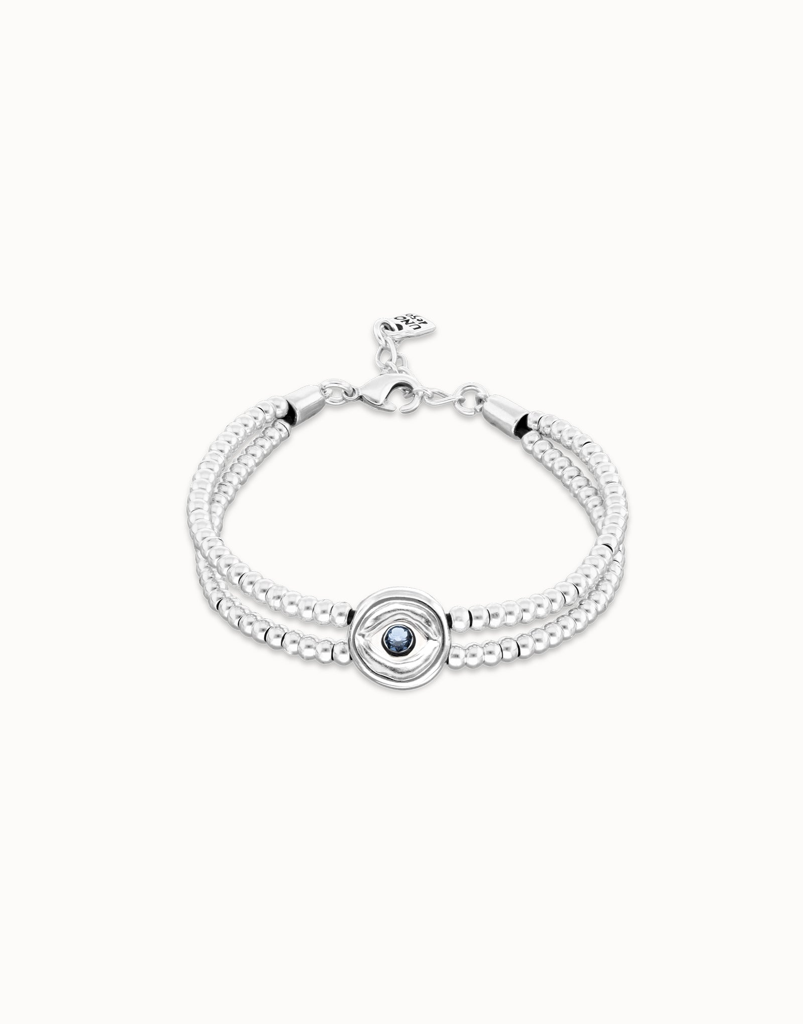 Silver double beads bracelet with eye and crystal. There are people who are visionary, whose intuition is their compass. Ser intuitiva takes into consideration that mystical side of us, allowing us to bring out our hidden self and show it to the world.
