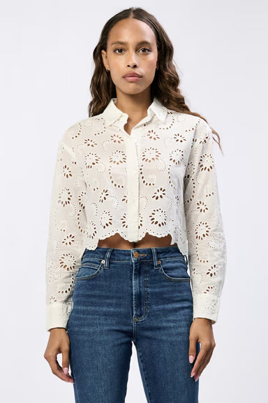 Miranda long sleeve embroidered eyelet shirt is elegant blends grace and sophistication with its unique lace details.