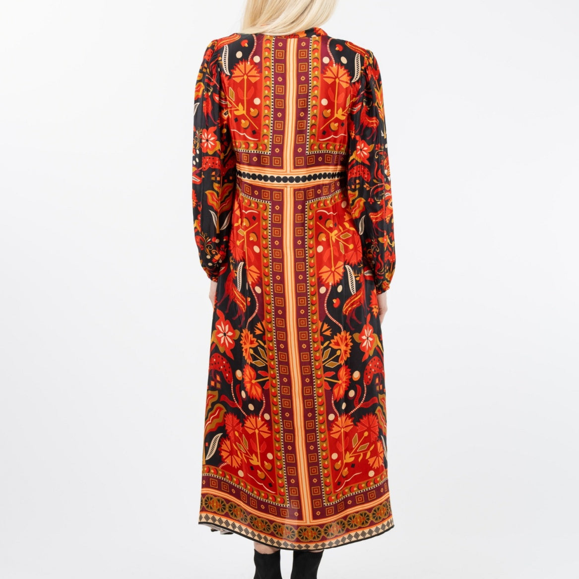 Long sleeve button front midi dress with side pockets