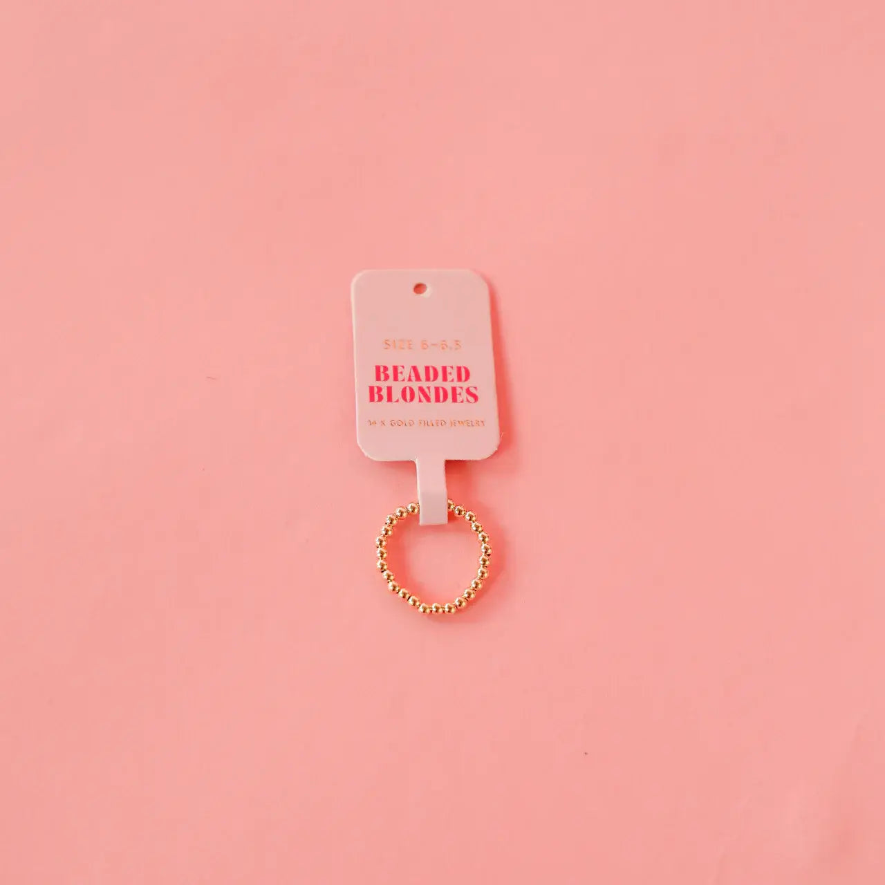 Our dainty gold filled Beaded Bands™ are an elastic ring perfect to wear alone or to be stacked with your class ring or other statement rings.