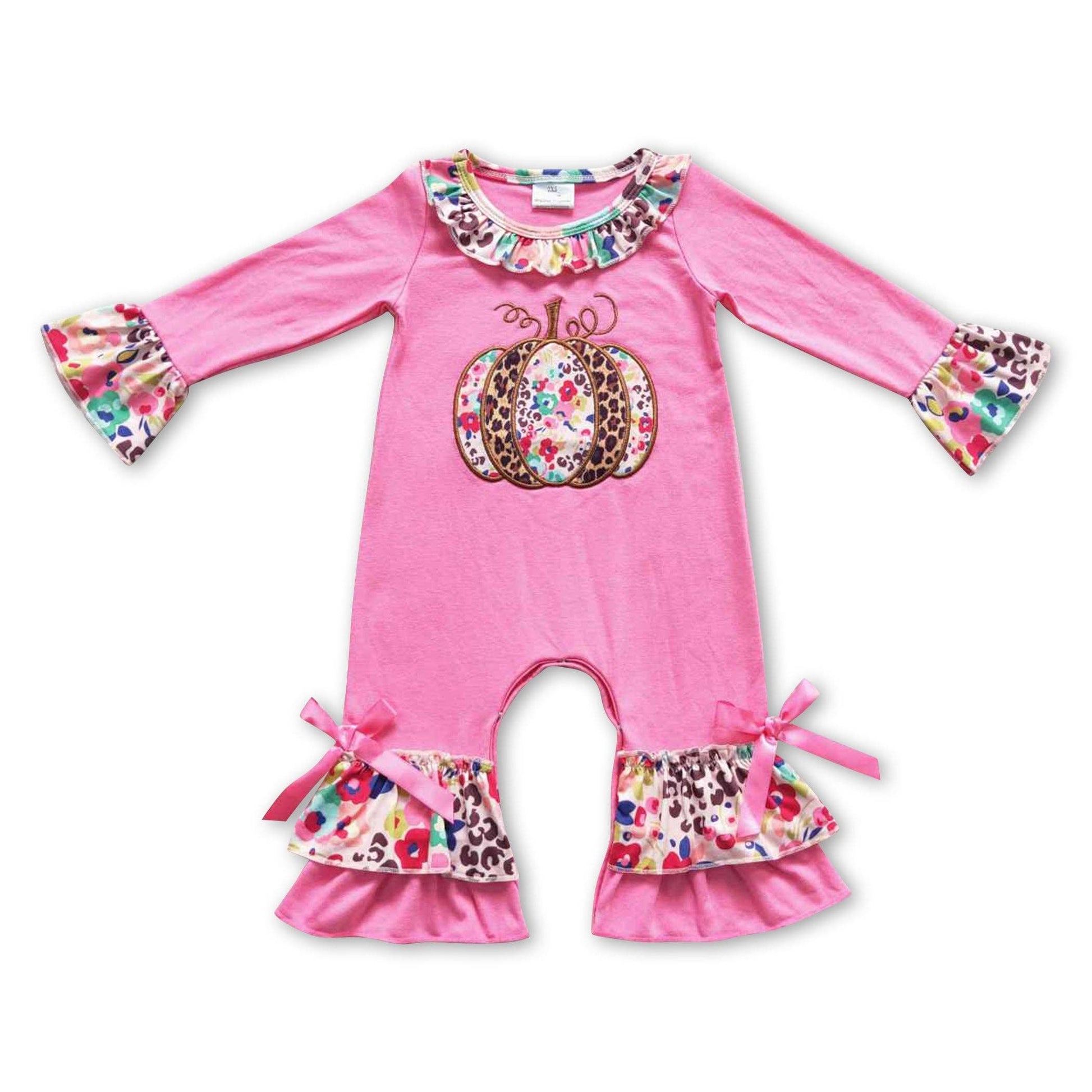 Baby LS Romper Floral Leopard Pumpkin Ruffle Fall