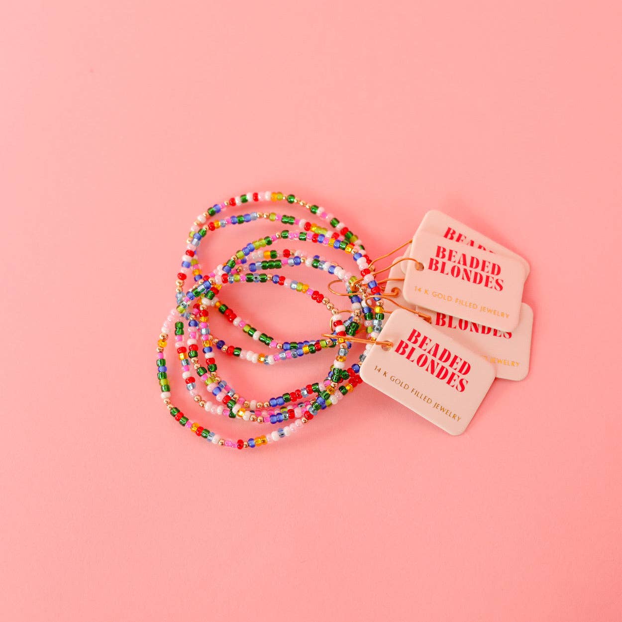 Beaded Blondes 2024 Holiday Bracelet. Add some color to your stack! This bracelet is made with colorful czech glass beads and 2.5mm 14k gold filled beads! ✨