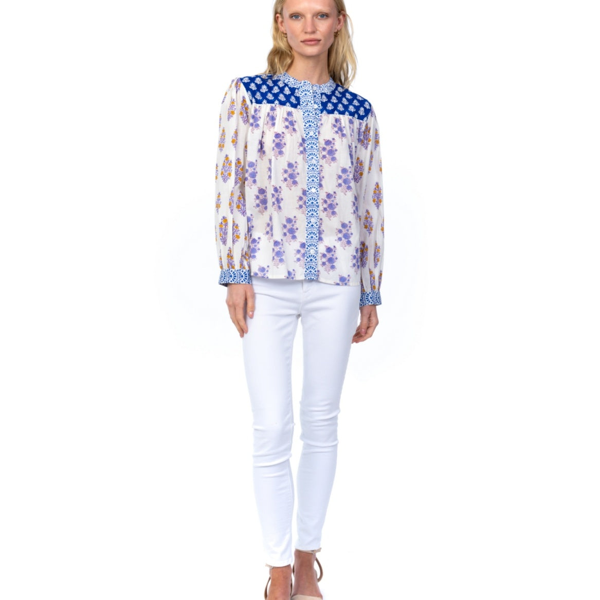 Mandarin collar with puff sleeves and yolk