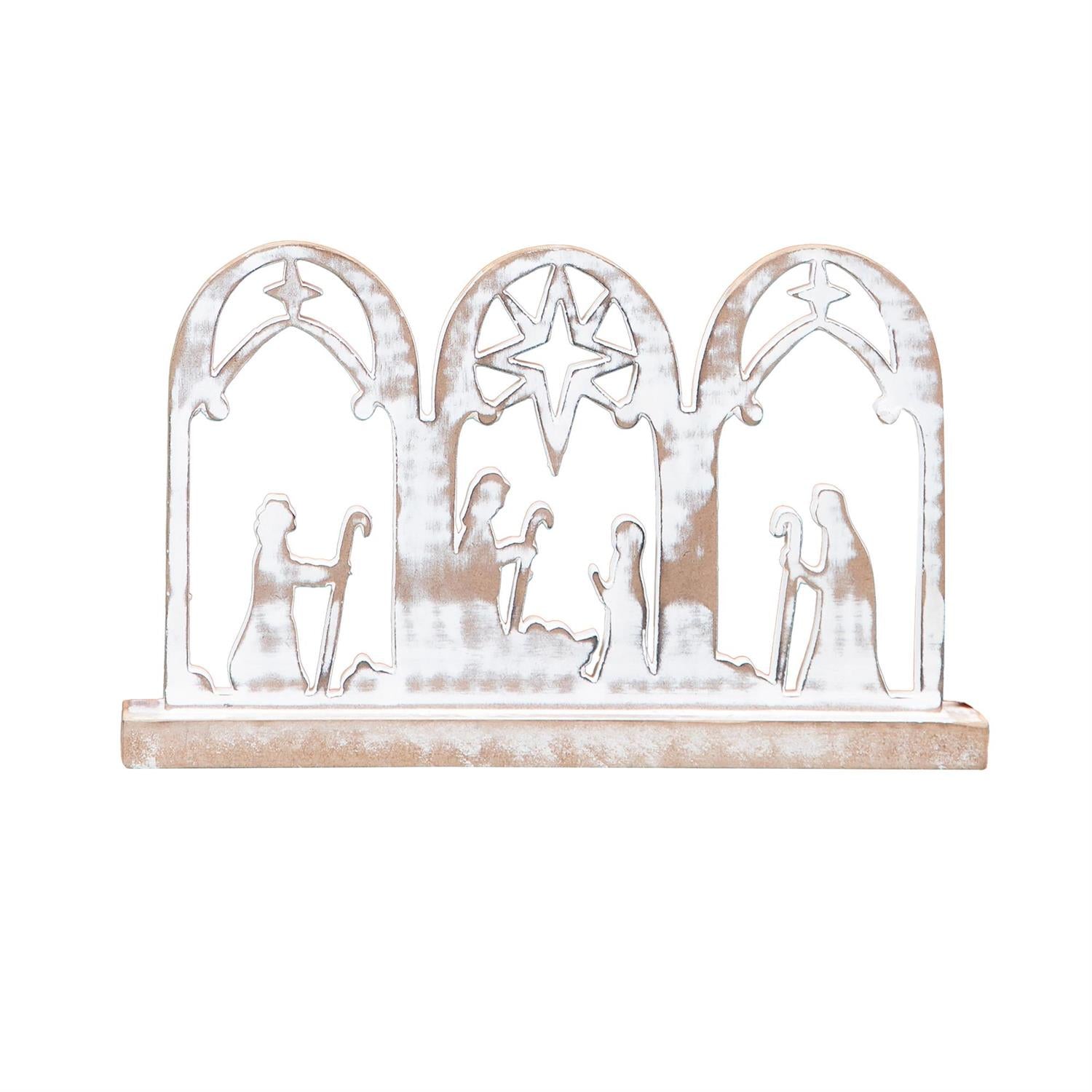 Add a touch of charm to any space with this delightful table décor. This piece features a distressed wooden depiction of the nativity scene. Whether adorning a mantel, shelf, or table, this piece is sure to become a cherished addition to any household. Add it to a display that’s already set up or set it out by itself and let it be the center of attention. It makes great gifts for anyone who loves decorating for the festive season.