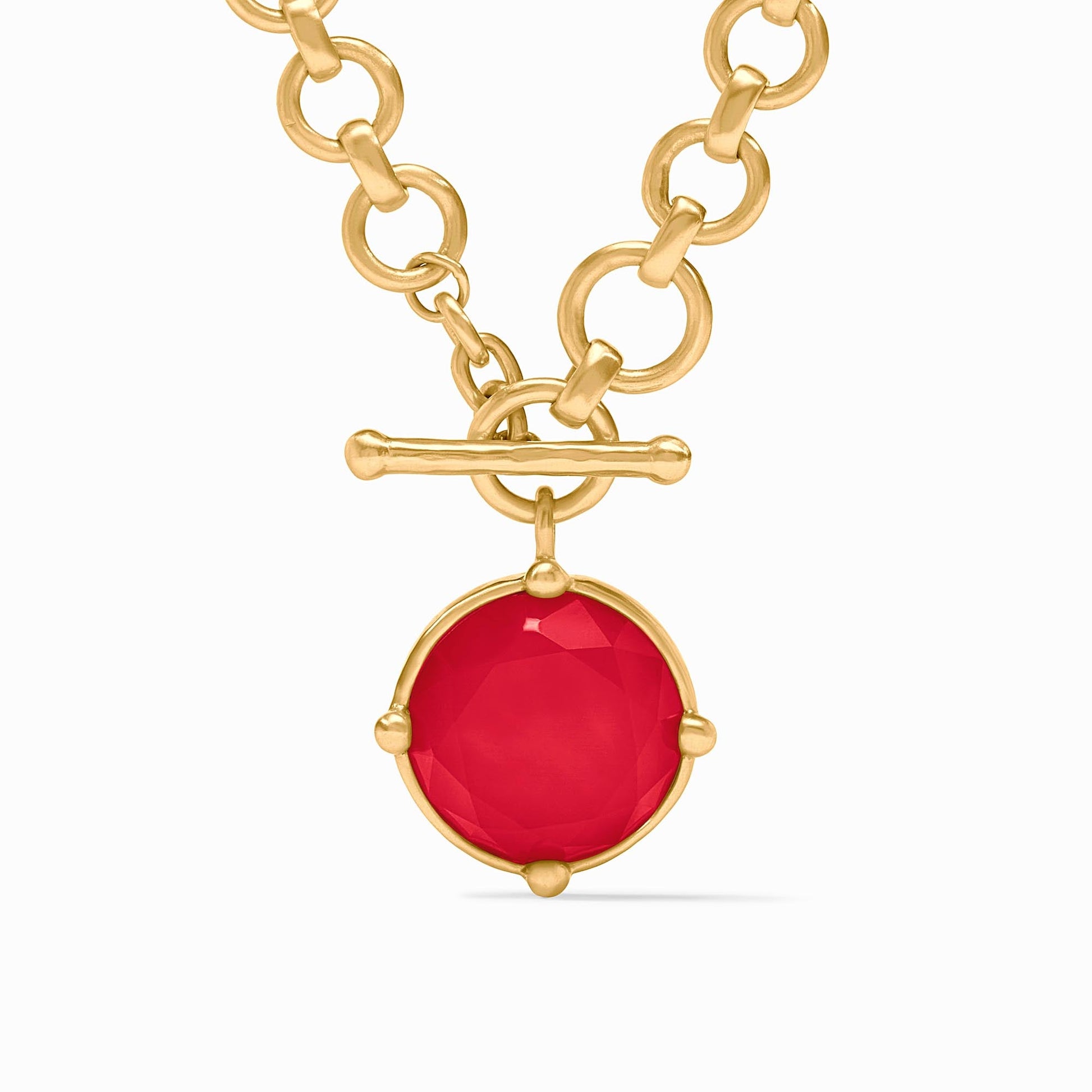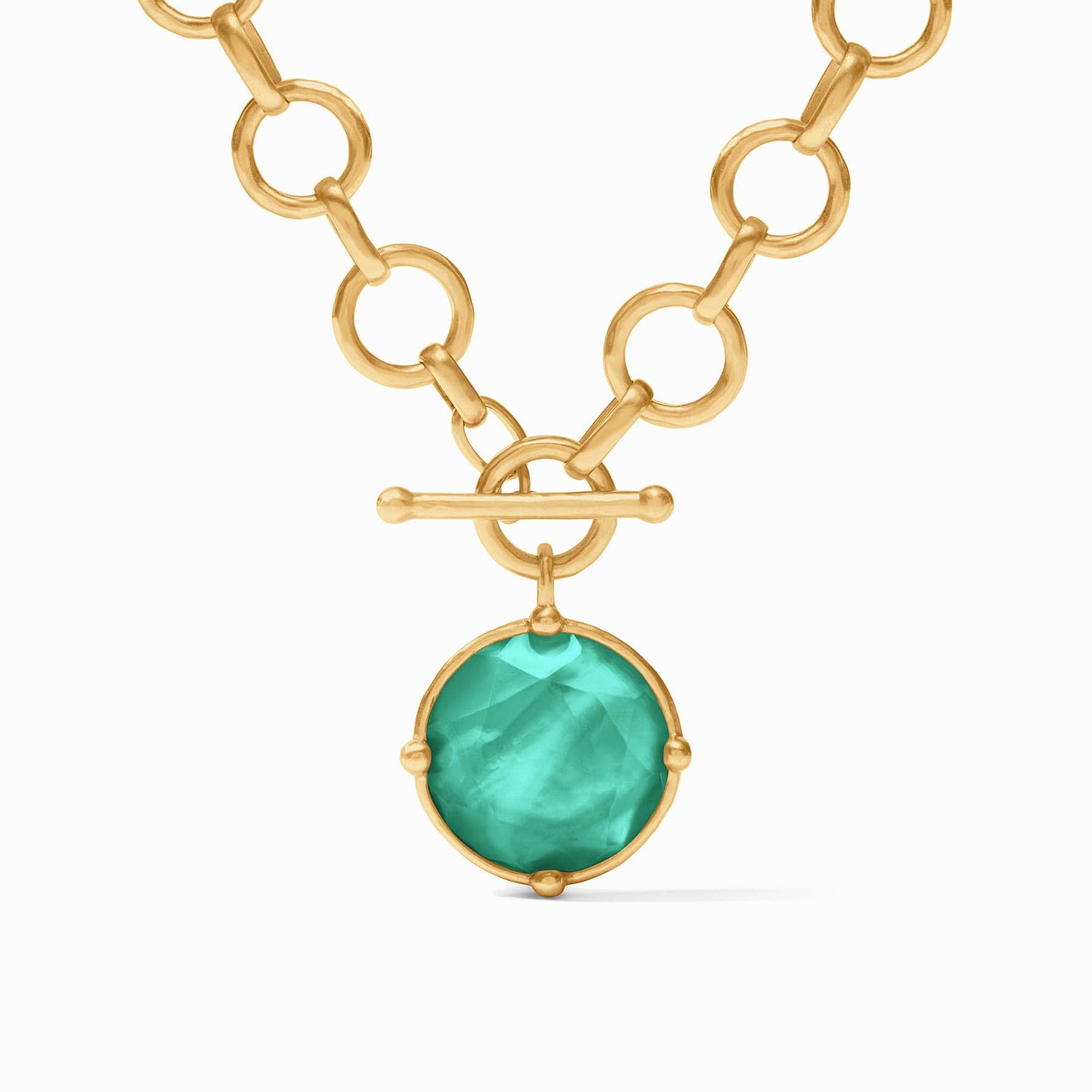 This demi-sized version of a favorite necklace has two ways to wear: Show the rose cut stone accented with golden beads or flip it to display a detailed bas relief bee.