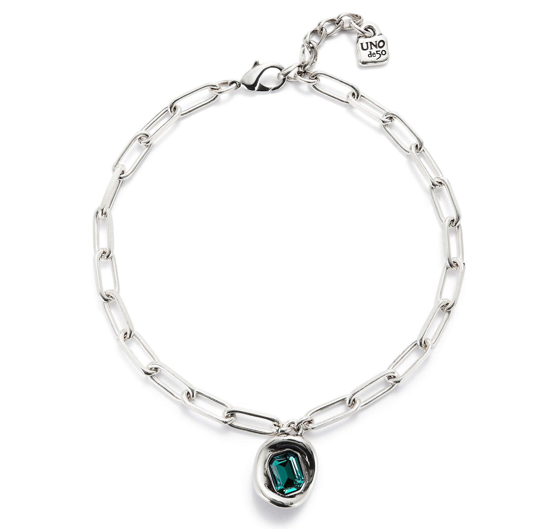 Sterling silver plated metal alloy chain with links and crystal