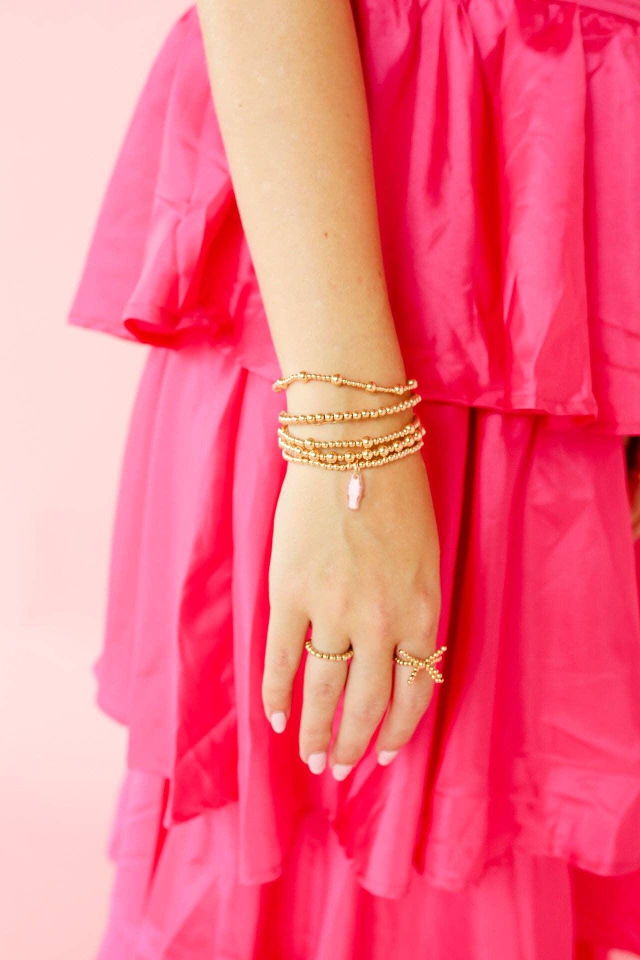 Made with 14 K gold filled tarnish proof beads and durable elastic string.