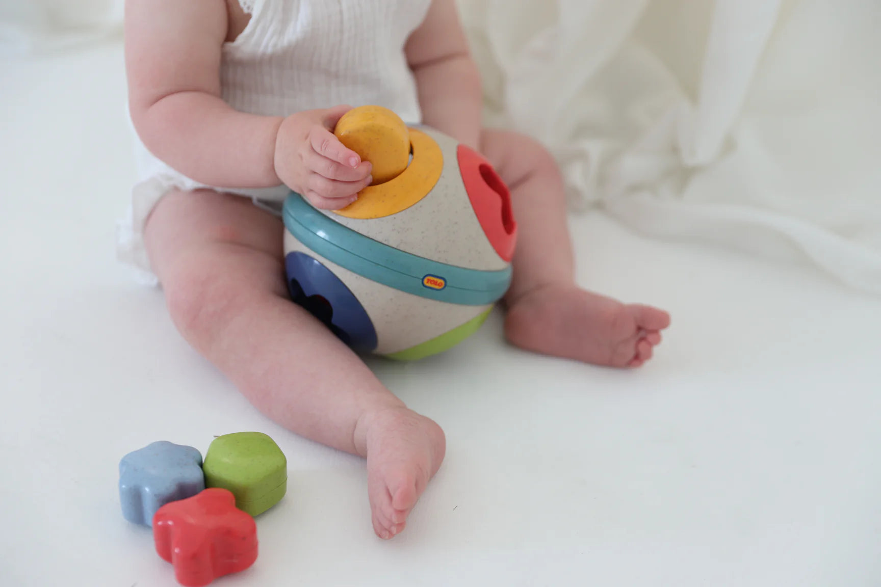 From the TOLO Bio collection, great as a ball or a shape sorter! Baby learns to recognize colors and shapes. Sounds and movements helps developing dexterity skills.