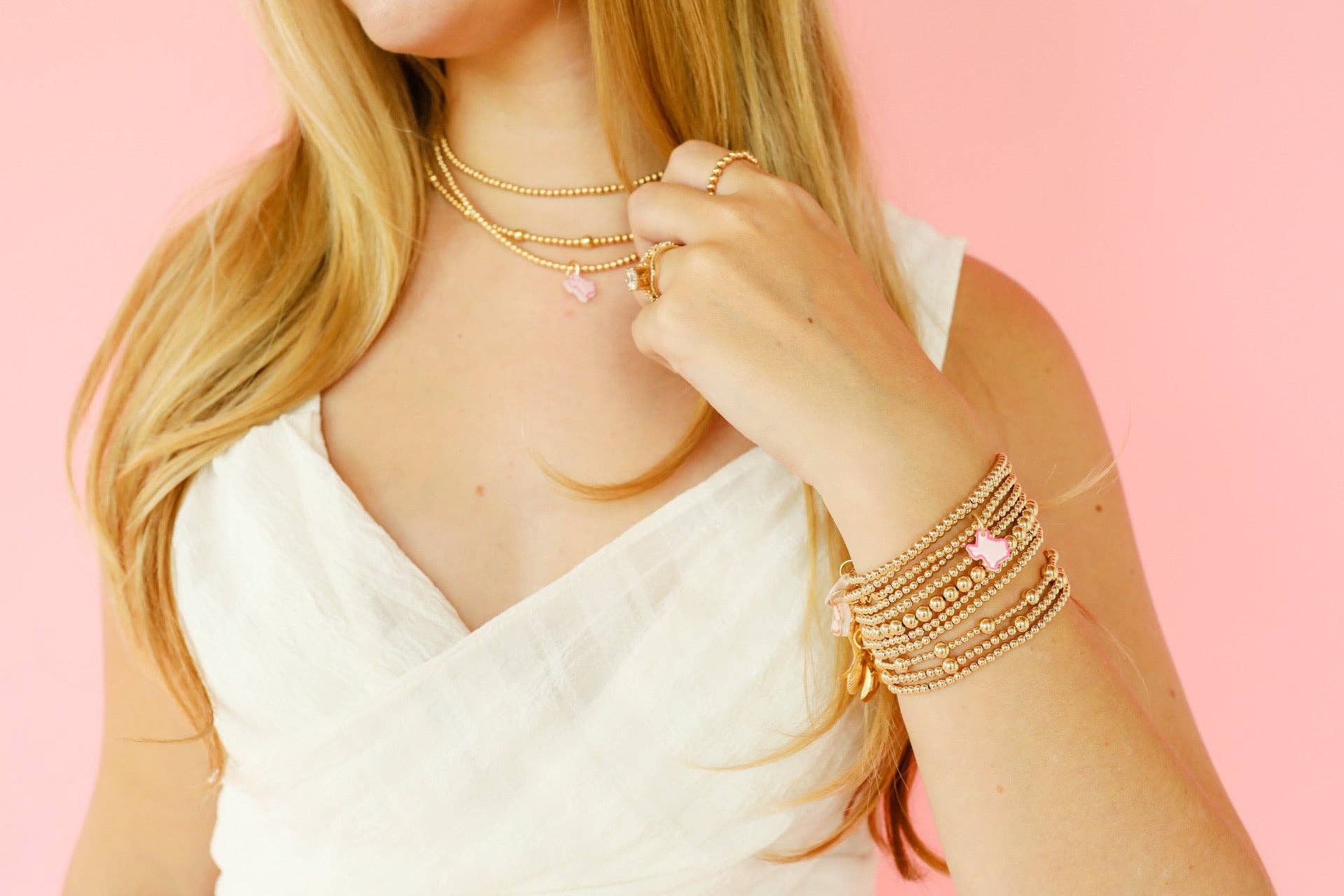 Made with 14 K gold filled tarnish proof beads and durable elastic string.