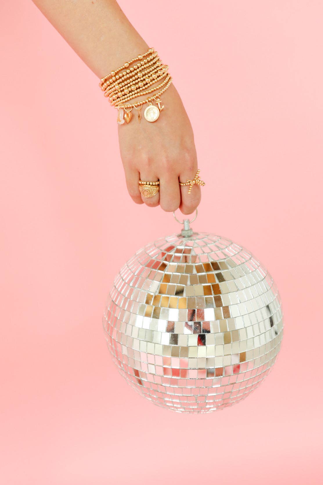 Our signature 14 K gold filled beaded bracelets with a hollow light weight gold filled charm.