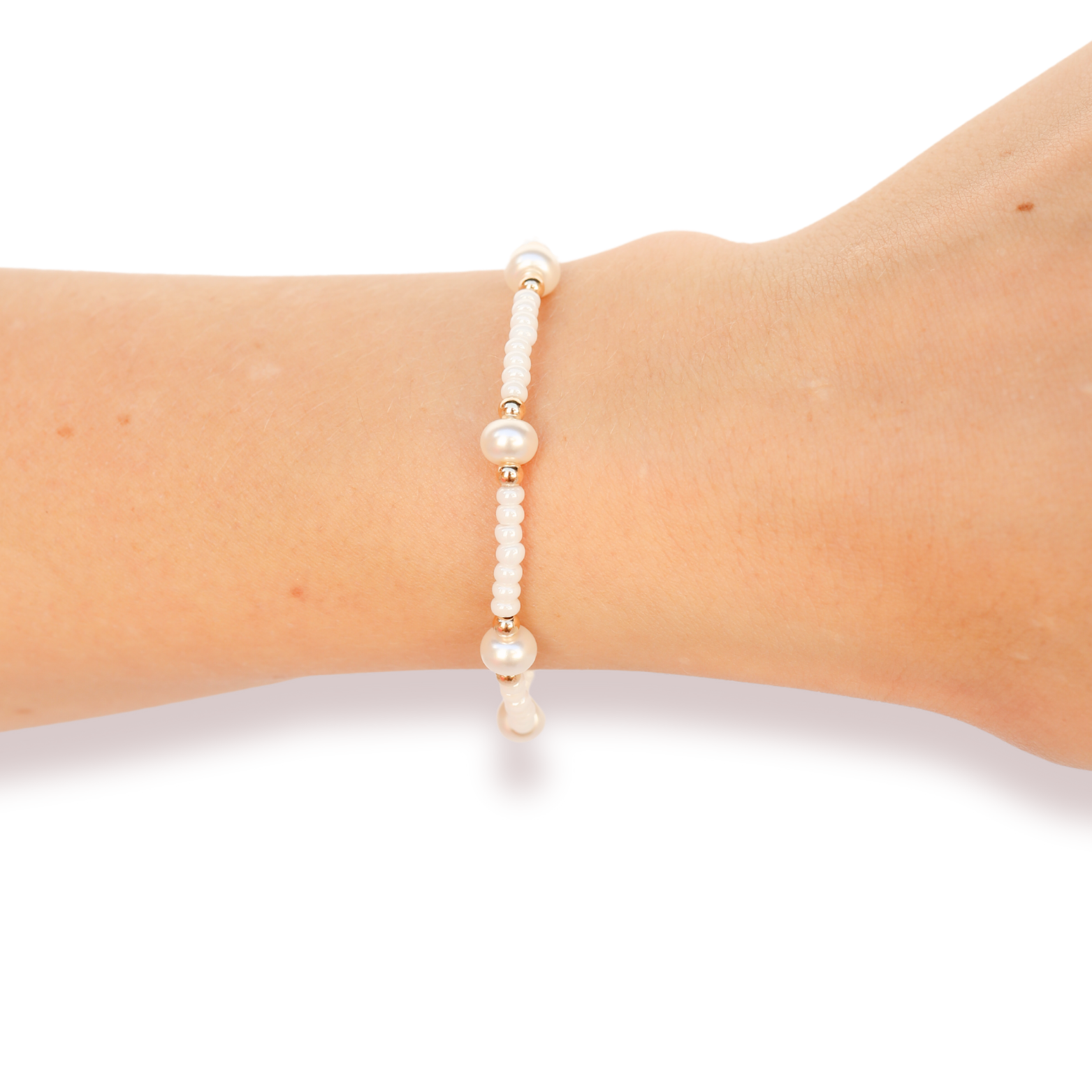 Beaded Blondes Spring 2025 Collection. This bracelet is made with colorful czech glass beads, 2.5mm beads & pearls.